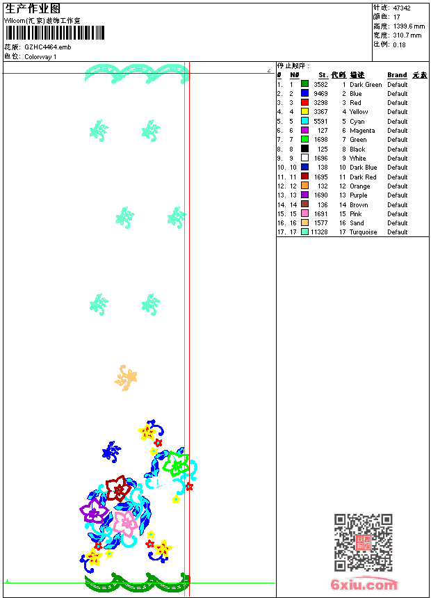 窗帘 emb花版参数: 大小:223.50 KB / 尺寸:311*1400[毫米] / 针数:47342针 / 线色:17 / 格式:emb / 版本:9 版带文件需绣花软件方可打开,可配色打印导出各种格式或直接上机绣。如无绣花软件可下载1:1模拟效果图。 PNG图片信息:大小:1.6(MB) /图宽*高:1176x5294(像素) emb下载 1:1图下载 关闭 相关花版: 水溶领 窗帘 红唇骷髅美女 裤袋 贴标 抽象花叶 摩托车标 窗帘 水溶条 骷髅 王冠字母 窗帘 水溶领 水溶朵花 领 窗帘 小熊卡通 山寨狮标 领 骷髅 山寨狮标 女孩头像 经典花 亮片 珠片章仔 章仔 窗帘 贴布小熊 老虎章仔 水溶肩 领
