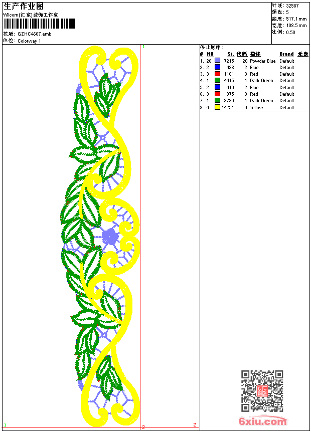水溶条码 emb花版参数: 大小:221.50 KB / 尺寸:108*517[毫米] / 针数:32587针 / 线色:5 / 格式:emb / 版本:9 版带文件需绣花软件方可打开,可配色打印导出各种格式或直接上机绣。如无绣花软件可下载1:1模拟效果图。 PNG图片信息:大小:0.9(MB) /图宽*高:411x1956(像素) emb下载 1:1图下载 关闭 相关花版: 裙条摆 章仔 水溶条码 心形王冠 狮标 领 卡通贴布女孩 水溶领 亮片 裤袋骷髅 字母锚 大嘴人物 山寨狮标 裙抽象曲线 水溶领 骷髅 骷髅 章仔 山寨狮标 水溶领 T恤后背曲线 弯条花 山寨狮标 经典花 窗帘 章仔 山寨狮标 印第安人章仔 骷髅骑士 章仔 领