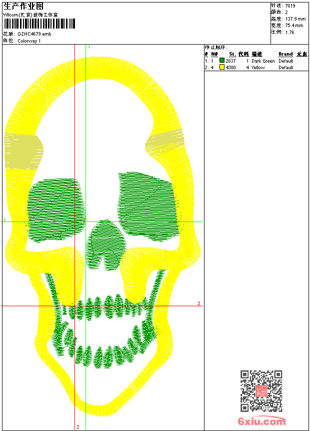 骷髅 emb花版参数: 大小:40.00 KB / 尺寸:75*138[毫米] / 针数:7019针 / 线色:2 / 格式:emb / 版本:e1.5 版带文件需绣花软件方可打开,可配色打印导出各种格式或直接上机绣。如无绣花软件可下载1:1模拟效果图。 PNG图片信息:大小:0.1(MB) /图宽*高:286x522(像素) emb下载 1:1图下载 关闭 相关花版: 小花满地 章仔 双手合什 章仔 窗帘 章仔 小鬼 简单花 肩花 后背几何 翅膀章仔 经典花 抽象T恤曲线 假领条 漂亮花 速度与激情 海盗 英格兰狮 亮片 珠片骷髅 POLO 领 锚 窗帘 古典图案条 锚章仔 艺术字 帘条 马章仔 经典花 章仔