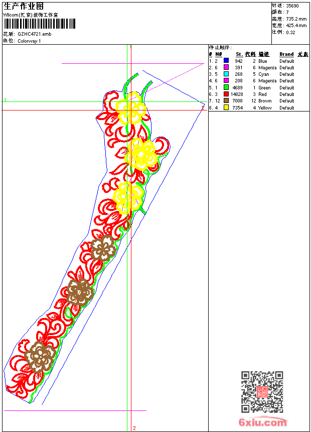 条花 emb花版参数: 大小:403.50 KB / 尺寸:425*735[毫米] / 针数:35690针 / 线色:7 / 格式:emb / 版本:9 版带文件需绣花软件方可打开,可配色打印导出各种格式或直接上机绣。如无绣花软件可下载1:1模拟效果图。 PNG图片信息:大小:1.2(MB) /图宽*高:1610x2781(像素) emb下载 1:1图下载 关闭 相关花版: 裙条 窗帘 十字绣玫瑰花 窗帘 衣裙摆花 领 抽象曲线花 复杂领 裙摆曲线 窗帘 简单花 裙大花 裙花 鹰章仔 领 狮标 网格条 对称抽象曲线 章仔盾 骷髅 窗帘 窗帘 狮标章 裙页摆条 字母 窗帘 墨镜幸普森 卡通小孩 蜗牛卡通 页裙下摆
