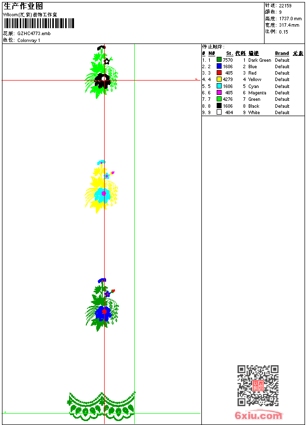 窗帘 emb花版参数: 大小:95.00 KB / 尺寸:317*1737[毫米] / 针数:22159针 / 线色:9 / 格式:emb / 版本:9 版带文件需绣花软件方可打开,可配色打印导出各种格式或直接上机绣。如无绣花软件可下载1:1模拟效果图。 PNG图片信息:大小:1.5(MB) /图宽*高:1201x6571(像素) emb下载 1:1图下载 关闭 相关花版: 亮片 珠片花 经典简洁花 领口 抽象条 珠片条 水溶朵花 抽象圆镜形 水溶领 亮片 珠片肩 领 T恤曲线 水溶朵花 唐装古典花 亮片 珠片骷髅 简单花 窗帘 朵花 窗帘 领 花 领 水溶领 水溶花 水溶条码 水溶假领 曲线皇冠 水溶朵花 窗帘 花条 领