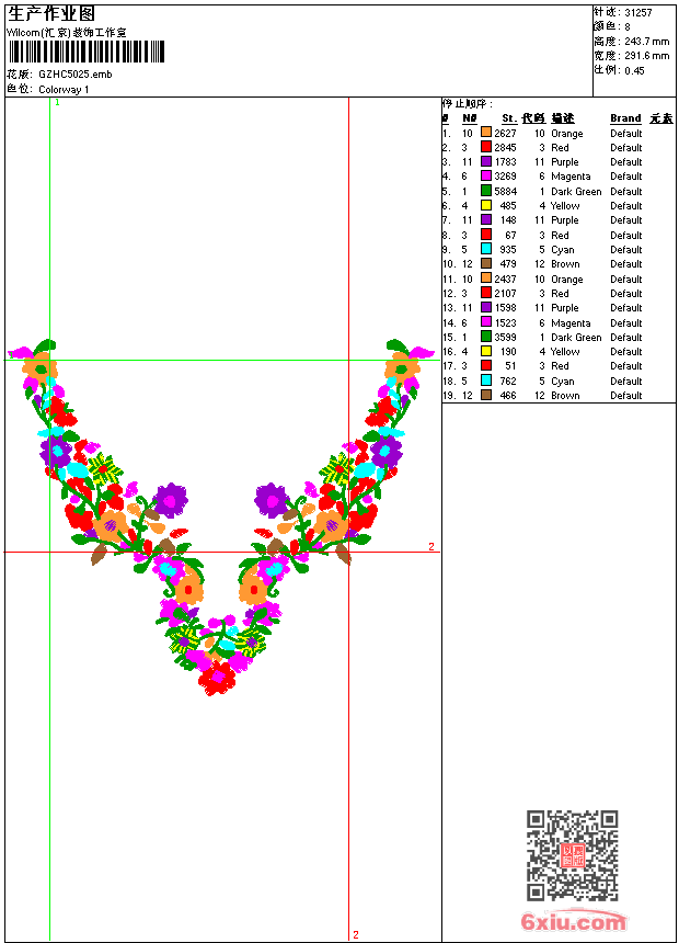 领 emb花版参数: 大小:181.00 KB / 尺寸:292*244[毫米] / 针数:31257针 / 线色:8 / 格式:emb / 版本:9 版带文件需绣花软件方可打开,可配色打印导出各种格式或直接上机绣。如无绣花软件可下载1:1模拟效果图。 PNG图片信息:大小:0.5(MB) /图宽*高:1104x922(像素) emb下载 1:1图下载 关闭 相关花版: 牛仔裤花 花经典 十字绣几何 领 领条 古典条 简洁童花 窗帘 经典花 经典单色花裤 十字绣条 裙摆 心形襟 领 简洁童花 蚊香曲线 亮片 珠片花朵 简洁花朵 水泡曲线 抽象水滴裙摆 窗帘 兔子 鸟 传统花 条带 亮片 珠片领 窗帘 亮片 简洁童花 简单花 童花蝴蝶