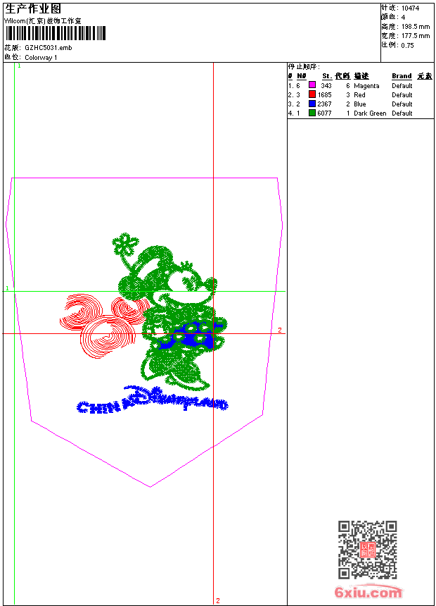 米妮裤袋 emb花版参数: 大小:68.00 KB / 尺寸:177*199[毫米] / 针数:10474针 / 线色:4 / 格式:emb / 版本:9 版带文件需绣花软件方可打开,可配色打印导出各种格式或直接上机绣。如无绣花软件可下载1:1模拟效果图。 PNG图片信息:大小:0.2(MB) /图宽*高:672x751(像素) emb下载 1:1图下载 关闭 相关花版: 裤袋 经典裤衣花 裤袋 DJ人物 领 牛仔裤花 花经典 十字绣几何 领 领条 古典条 简洁童花 窗帘 经典花 经典单色花裤 十字绣条 裙摆 心形襟 领 简洁童花 蚊香曲线 亮片 珠片花朵 简洁花朵 水泡曲线 抽象水滴裙摆 窗帘 兔子 鸟 传统花 条带