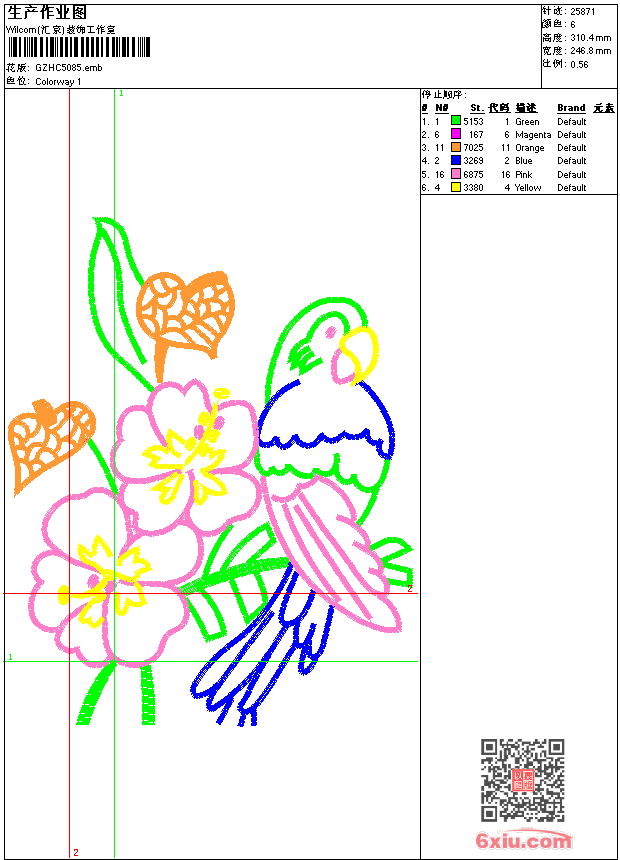 鹦鹉鸟 emb花版参数: 大小:241.50 KB / 尺寸:247*310[毫米] / 针数:25871针 / 线色:6 / 格式:emb / 版本:9 版带文件需绣花软件方可打开,可配色打印导出各种格式或直接上机绣。如无绣花软件可下载1:1模拟效果图。 PNG图片信息:大小:0.6(MB) /图宽*高:934x1174(像素) emb下载 1:1图下载 关闭 相关花版: 海鱼 家纺曲线 水溶领花 三叶花 对称曲线花 裙摆 裤袋 窗花 人物 领 美女头像 水溶假领 领 裙摆 小兔卡通贴布 领 豆苗 亮片 珠片衣胸 花条 亮片 珠片大花裙 领 十字绣襟 kitty猫 史努比卡通 领 裙女孩 简洁花朵 经典熊大 蝴蝶 花朵