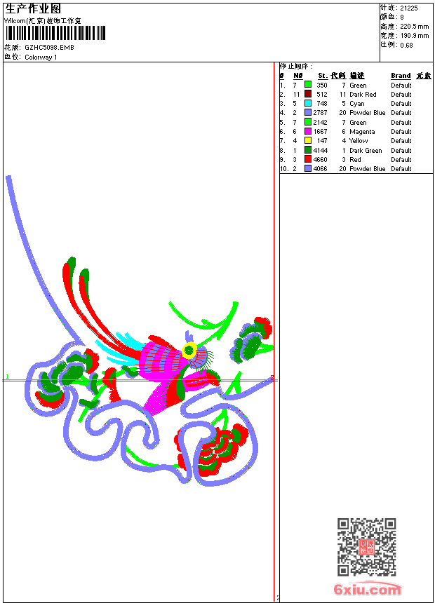 传统吉祥鸟 emb花版参数: 大小:122.50 KB / 尺寸:191*221[毫米] / 针数:21225针 / 线色:8 / 格式:emb / 版本:9 版带文件需绣花软件方可打开,可配色打印导出各种格式或直接上机绣。如无绣花软件可下载1:1模拟效果图。 PNG图片信息:大小:0.3(MB) /图宽*高:723x835(像素) emb下载 1:1图下载 关闭 相关花版: 领 条带 童花 领 裙大花摆 吉祥图 领 领 衣角 简洁花 裙摆 鹦鹉鸟 海鱼 家纺曲线 水溶领花 三叶花 对称曲线花 裙摆 裤袋 窗花 人物 领 美女头像 水溶假领 领 裙摆 小兔卡通贴布 领 豆苗 亮片 珠片衣胸