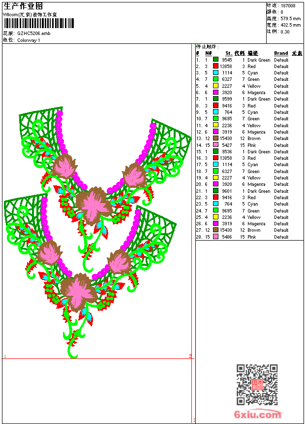 领 emb花版参数: 大小:1.02 MB / 尺寸:433*580[毫米] / 针数:187008针 / 线色:8 / 格式:emb / 版本:9 版带文件需绣花软件方可打开,可配色打印导出各种格式或直接上机绣。如无绣花软件可下载1:1模拟效果图。 PNG图片信息:大小:2.7(MB) /图宽*高:1637x2193(像素) emb下载 1:1图下载 收藏本图 关闭 相关花版: 领胸 线条带 领 花小 蜂窝条 领 裙花 音符 衣角花 米妮卡通 抽象凤凰 裙摆 卡通海马 简洁花 条带 字母 经典花 美女标章 曲线条带 唐装传统梅花 挖孔裙摆 领 卡通松鼠 亮片 裙条珠片 衣三角曲线 圆轮曲线 方形抽象花组合 裙摆 领 铜钱裙摆