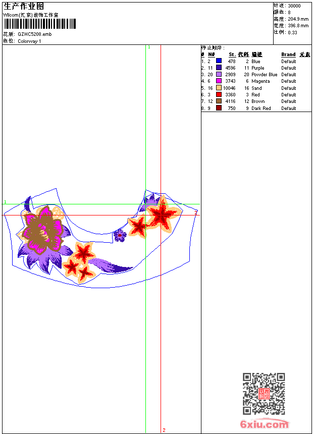 胸前花 emb花版参数: 大小:159.00 KB / 尺寸:397*205[毫米] / 针数:30000针 / 线色:8 / 格式:emb / 版本:9 版带文件需绣花软件方可打开,可配色打印导出各种格式或直接上机绣。如无绣花软件可下载1:1模拟效果图。 PNG图片信息:大小:0.8(MB) /图宽*高:1502x775(像素) emb下载 1:1图下载 收藏本图 关闭 相关花版: 领 领 领胸 线条带 领 花小 蜂窝条 领 裙花 音符 衣角花 米妮卡通 抽象凤凰 裙摆 卡通海马 简洁花 条带 字母 经典花 美女标章 曲线条带 唐装传统梅花 挖孔裙摆 领 卡通松鼠 亮片 裙条珠片 衣三角曲线 圆轮曲线 方形抽象花组合 裙摆