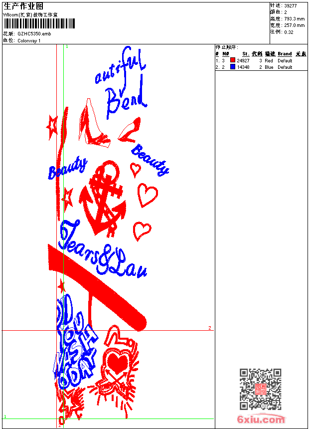 艺术字母 emb花版参数: 大小:171.00 KB / 尺寸:257*793[毫米] / 针数:39277针 / 线色:2 / 格式:emb / 版本:9 版带文件需绣花软件方可打开,可配色打印导出各种格式或直接上机绣。如无绣花软件可下载1:1模拟效果图。 PNG图片信息:大小:1.6(MB) /图宽*高:973x3001(像素) emb下载 1:1图下载 关闭 相关花版: 衣裤大花 骷髅 裤花 狮标 领 经典朵花 衣角曲线 领 兔卡通 几何曲线 简笔花条 袖条 领 亮片 珠片领 亮片 珠片曲线 贴布熊 分割叶 传统插针牡丹花 彩虹 蝴蝶 水溶朵花 美女脸 兔卡通 肩曲线 卡通蛇 字母 领 窗帘 裙花 裙花波浪