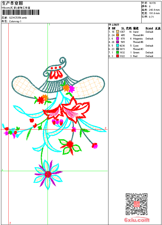 花蓝 emb花版参数: 大小:137.00 KB / 尺寸:192*244[毫米] / 针数:16170针 / 线色:8 / 格式:emb / 版本:9 版带文件需绣花软件方可打开,可配色打印导出各种格式或直接上机绣。如无绣花软件可下载1:1模拟效果图。 PNG图片信息:大小:0.4(MB) /图宽*高:725x923(像素) emb下载 1:1图下载 关闭 相关花版: 领 曲线 抽象叶花 艺术字母 衣裤大花 骷髅 裤花 狮标 领 经典朵花 衣角曲线 领 兔卡通 几何曲线 简笔花条 袖条 领 亮片 珠片领 亮片 珠片曲线 贴布熊 分割叶 传统插针牡丹花 彩虹 蝴蝶 水溶朵花 美女脸 兔卡通 肩曲线 卡通蛇 字母