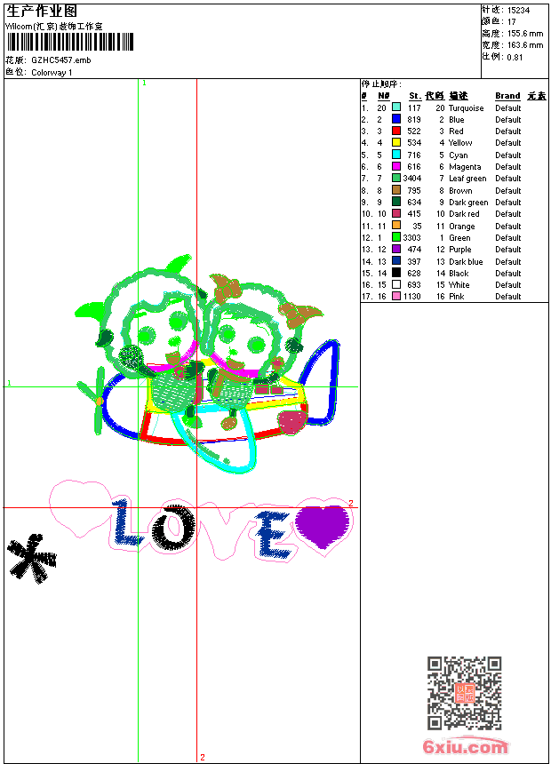 喜洋洋 emb花版参数: 大小:120.50 KB / 尺寸:164*156[毫米] / 针数:15234针 / 线色:17 / 格式:emb / 版本:9 版带文件需绣花软件方可打开,可配色打印导出各种格式或直接上机绣。如无绣花软件可下载1:1模拟效果图。 PNG图片信息:大小:0.3(MB) /图宽*高:619x589(像素) emb下载 1:1图下载 关闭 相关花版: 经典花 童花裙 简洁花 线条鱼吉祥 线条花叶 蝴蝶抽象全身绣曲线 古典网状花 抽象花 亮片 珠片狮标 花 条码带 男孩人物 古典胸领 心形花朵 简单花朵 童花字母 条码 领 衣角花 抽象曲线 唐老鸭卡通 帽子 衣角条花 水溶朵花 狮标 抽象圆花 简洁花 小熊 骷髅 皮带条