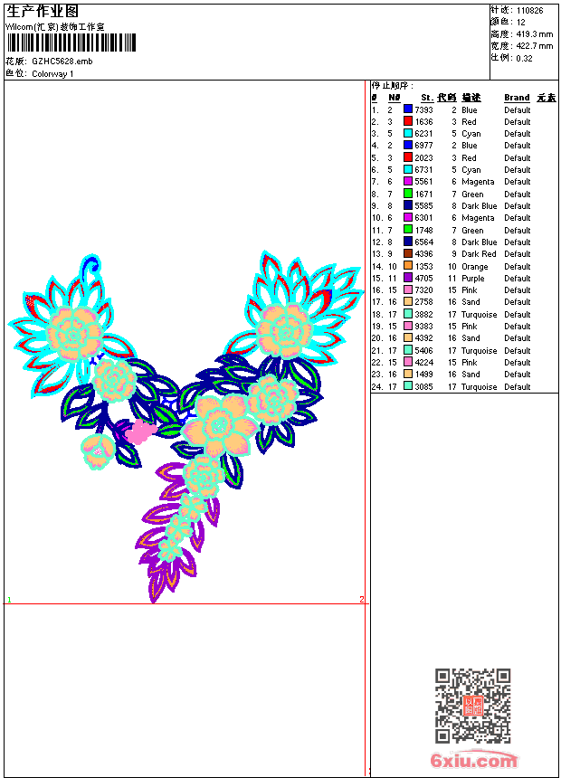 领 emb花版参数: 大小:725.00 KB / 尺寸:423*419[毫米] / 针数:110826针 / 线色:12 / 格式:emb / 版本:9 版带文件需绣花软件方可打开,可配色打印导出各种格式或直接上机绣。如无绣花软件可下载1:1模拟效果图。 PNG图片信息:大小:2.1(MB) /图宽*高:1599x1586(像素) emb下载 1:1图下载 关闭 相关花版: 水滴几何 领 衣摆 领 衣肩曲线 裤脚花 衣裙摆 简洁衣花 领 匹绣 卡通怪兽 领 小屋卡通 抽象人物 心形花 领 童花 字母 亮片 领 汽车 领 领 衣前胸抽象花 简洁线条 牛头 家纺花 十字绣条带 童花 领 领