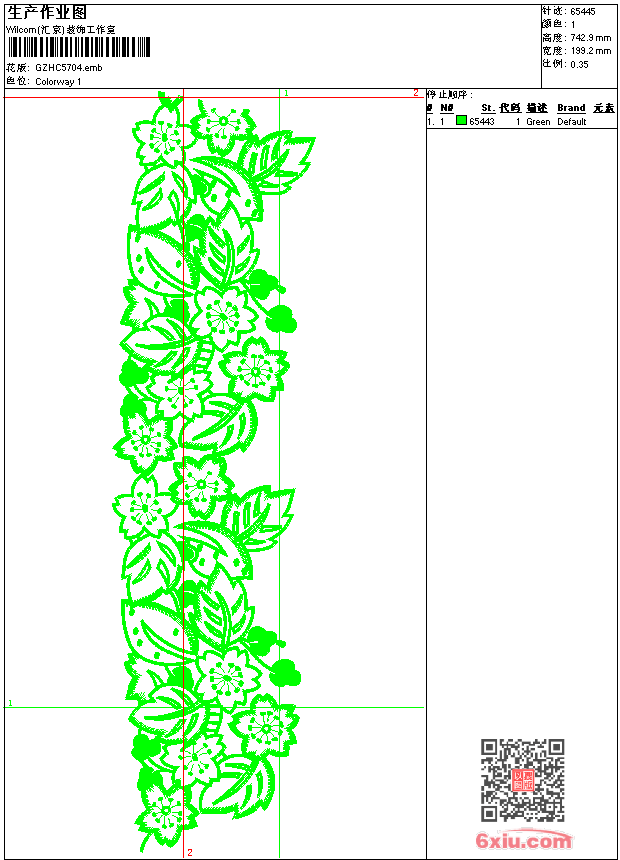 花条 emb花版参数: 大小:596.50 KB / 尺寸:199*743[毫米] / 针数:65445针 / 线色:1 / 格式:emb / 版本:9 版带文件需绣花软件方可打开,可配色打印导出各种格式或直接上机绣。如无绣花软件可下载1:1模拟效果图。 PNG图片信息:大小:1.6(MB) /图宽*高:754x2810(像素) emb下载 1:1图下载 关闭 相关花版: 花条 衣襟条 童花 卡通熊 胸抽象花 裙摆 领 古典芭蕉 镂空花 卡通熊 古典条 裤袋美女头像 领条 领 绳绣 领胸 激光裙 吉祥蝴蝶 花条 雪宝 猫头鹰 乱针条带 吉祥鸟 吉祥金鱼 童抽象衣 童小花 条码 骷髅曲线 牡丹花 简洁花