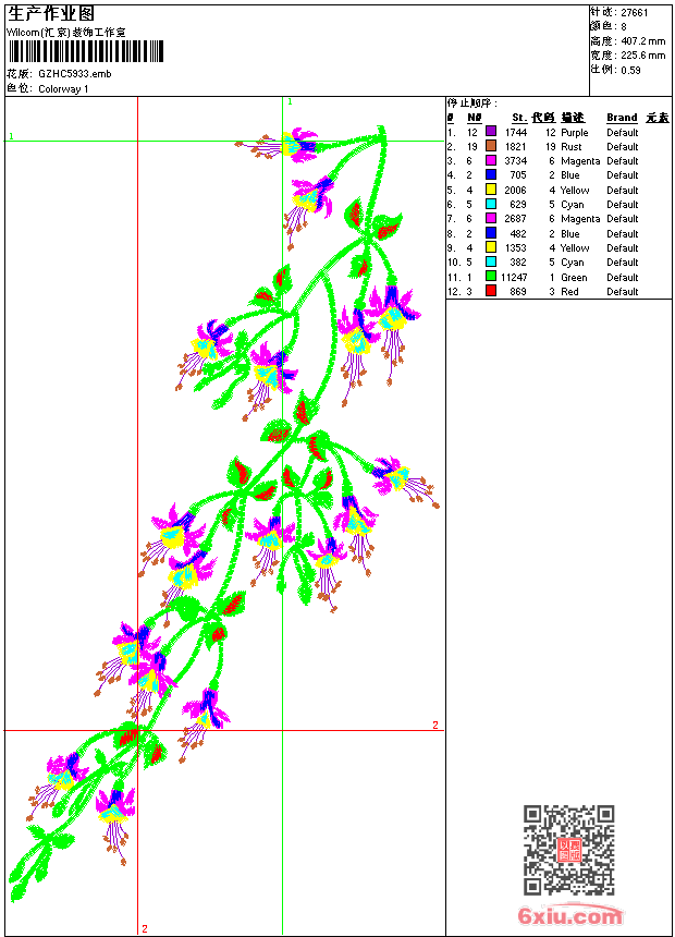 上衣花 emb花版参数: 大小:214.00 KB / 尺寸:226*407[毫米] / 针数:27661针 / 线色:8 / 格式:emb / 版本:9 版带文件需绣花软件方可打开,可配色打印导出各种格式或直接上机绣。如无绣花软件可下载1:1模拟效果图。 PNG图片信息:大小:0.5(MB) /图宽*高:854x1541(像素) emb下载 1:1图下载 关闭 相关花版: 贴布熊卡通 简洁花 窗帘 领网布 蝴蝶花 裙花 蜘蛛网 蝴蝶花 中国结花 带条 假领花牡丹 简洁花 松鼠卡通贴布 抽象字母 条码 弯条 抽象曲线 领 古典小花 碎点抽象 领 小朵花 童花贴布 几何形 上衣满绣抽象 假领 匹绣 王冠球标 梅花 贴布女孩