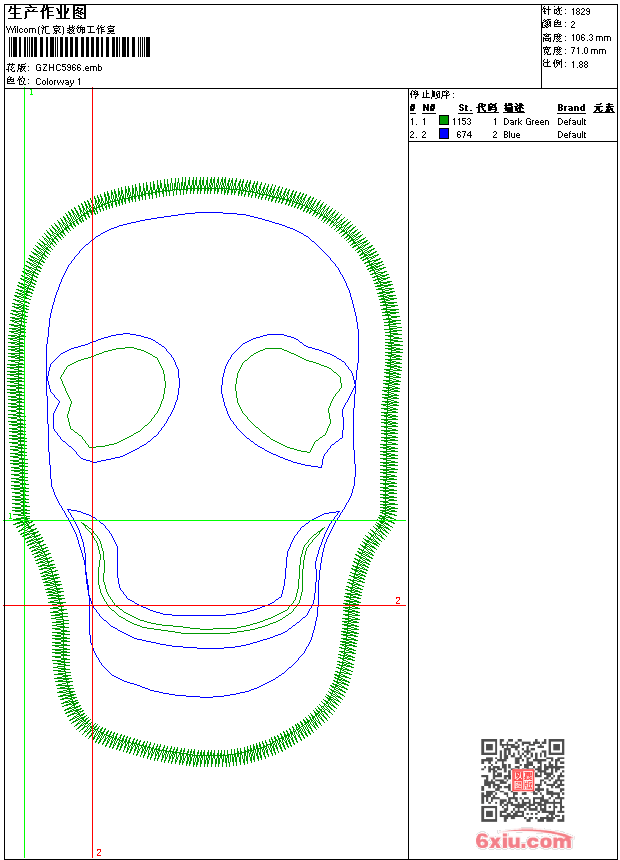 骷髅 emb花版参数: 大小:24.50 KB / 尺寸:71*106[毫米] / 针数:1829针 / 线色:2 / 格式:emb / 版本:9 版带文件需绣花软件方可打开,可配色打印导出各种格式或直接上机绣。如无绣花软件可下载1:1模拟效果图。 PNG图片信息:大小:0.1(MB) /图宽*高:269x402(像素) emb下载 1:1图下载 关闭 相关花版: 女孩贴布 上衣满绣 经典花 简笔大花 领 企鹅卡通贴布 裙腰抽象花 滑板卡通人物 带条 乱笔画裙 小狗卡通 窗帘 童花 裙摆 网布吊坠花 古典抽象方块 领 简笔玫瑰花 童花 抽象单针肩 裙摆 简洁牡丹花 古典圈 几何条 领 花条 裙摆 裤袋 上衣花 贴布熊卡通