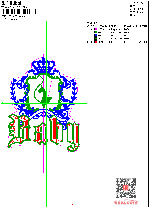 亮片 天猫王冠 emb花版参数: 大小:264.00 KB / 尺寸:300*428[毫米] / 针数:44570针 / 线色:4 / 格式:emb / 版本:9 版带文件需绣花软件方可打开,可配色打印导出各种格式或直接上机绣。如无绣花软件可下载1:1模拟效果图。 PNG图片信息:大小:1.0(MB) /图宽*高:1135x1619(像素) emb下载 1:1图下载 关闭 相关花版: 抽象曲线 经典花 肩花 网布条码 贴布卡通熊 狮标 裙摆 卡通狗 朵花 衣领网布 玫瑰花 抽象小鸟吉祥 简洁小花 衣领 章标 衣领 V领 裙花摆 裙花摆 童裙花 羽毛 骷髅 女孩贴布 上衣满绣 经典花 简笔大花 领 企鹅卡通贴布 裙腰抽象花 滑板卡通人物
