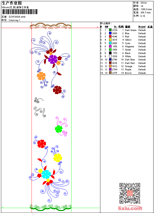 窗帘 emb花版参数: 大小:136.00 KB / 尺寸:310*1381[毫米] / 针数:35732针 / 线色:14 / 格式:emb / 版本:9 版带文件需绣花软件方可打开,可配色打印导出各种格式或直接上机绣。如无绣花软件可下载1:1模拟效果图。 PNG图片信息:大小:1.6(MB) /图宽*高:1172x5223(像素) emb下载 1:1图下载 关闭 相关花版: 菊花 裙摆 小牡丹 经典花装饰 卡通贴布熊 裤袋 经典花 复杂面条曲线 窗帘 对称花 后肩曲线 曲线条 裙花 童花 肩方块 裤袋 裙摆 水滴曲线 抽象花童 抽象对称曲线 简洁花 简洁花 angle字母翅膀 美女后背字母 裙摆 牡丹花 条带 古典裙摆 窗帘 衣角条花