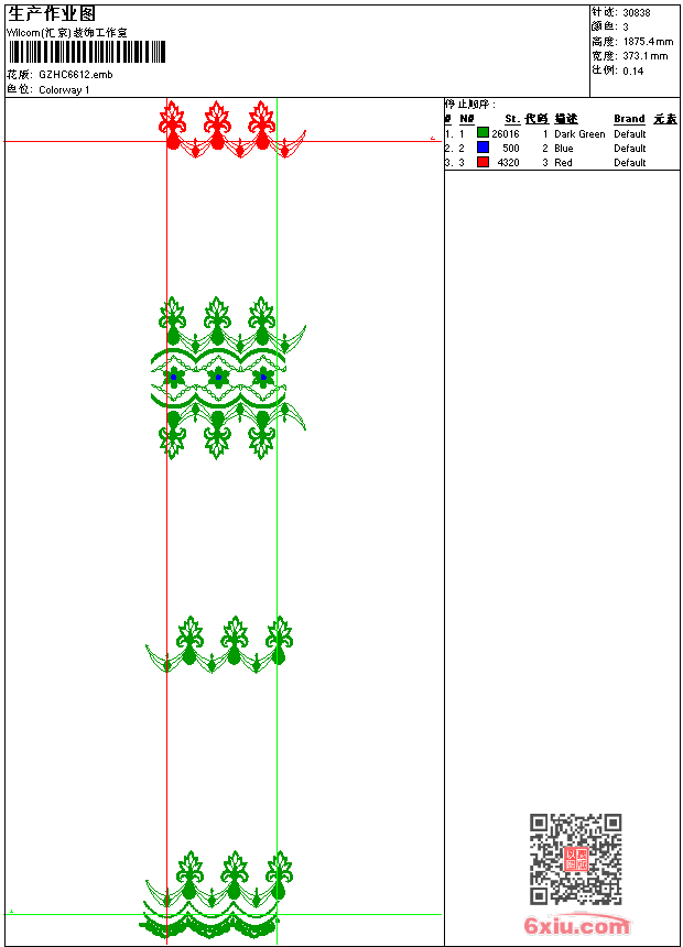 - emb花版参数: 大小:64.50 KB / 尺寸:373*1875[毫米] / 针数:30838针 / 线色:3 / 格式:emb / 版本:9