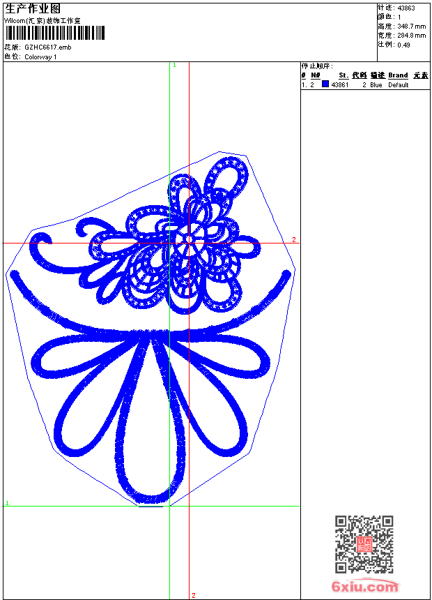 - emb花版参数: 大小:296.00 KB / 尺寸:285*349[毫米] / 针数:43810针 / 线色:1 / 格式:emb / 版本:9