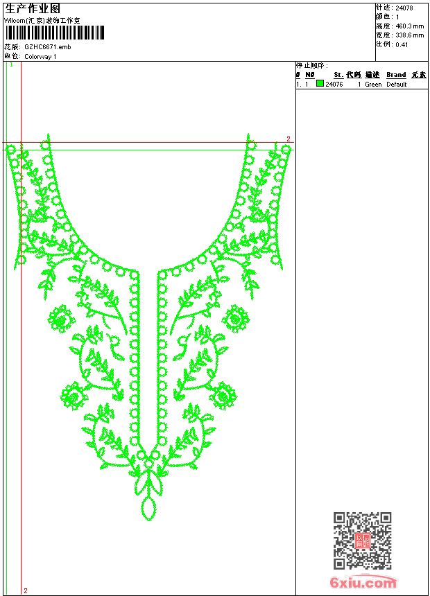 衣领 emb花版参数: 大小:452.00 KB / 尺寸:339*460[毫米] / 针数:24078针 / 线色:1 / 格式:emb / 版本:9 版带文件需绣花软件方可打开,可配色打印导出各种格式或直接上机绣。如无绣花软件可下载1:1模拟效果图。 PNG图片信息:大小:0.8(MB) /图宽*高:1281x1741(像素) emb下载 1:1图下载 关闭 相关花版: 简单花 烫衣领 古典符号 网格针 女装上衣曲线 假领 裙摆 马标章 绳绣曲线 凤凰鸟吉祥 裙摆 人物卡通 抽象曲线 吉祥抽象 狗卡通 烫花 裙V形曲线 裙摆曲线古典 章仔 裤袋花 衣领 简单花 条码花肩衣 裙摆古典 条码花古典 龙吉祥胸前 衣领烫花 裤曲线 亮片 花珠片 裤花经典