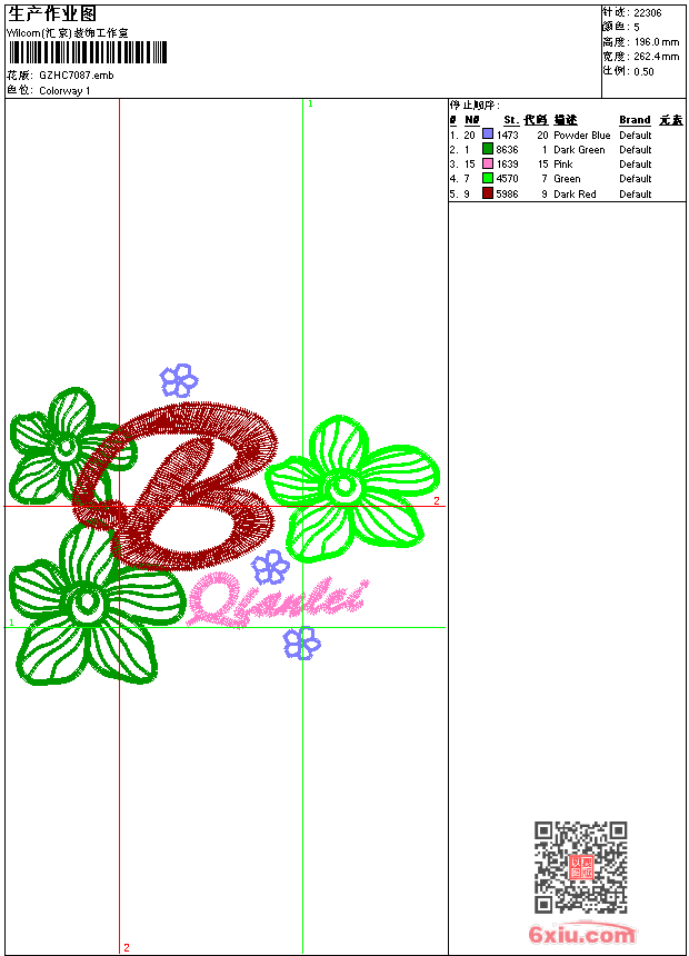 童花 emb花版参数: 大小:173.00 KB / 尺寸:262*196[毫米] / 针数:22306针 / 线色:5 / 格式:emb / 版本:9 版带文件需绣花软件方可打开,可配色打印导出各种格式或直接上机绣。如无绣花软件可下载1:1模拟效果图。 PNG图片信息:大小:0.7(MB) /图宽*高:993x742(像素) emb下载 1:1图下载 关闭 相关花版: 蝴蝶卡通 卡通betty T恤曲线 花蓝花 窗帘 苹果 传统剪纸月亮 熊字母 衣裙摆边条 童花 绳绣波浪 卡通人物 裤袋米奇 古典花 衣领 水溶衣领 裙摆 球队章 裤脚摆 翅膀曲线 衣摆 荔枝水果 驴贴布 衣领 曲线条码 家纺大花 简洁花 粗花 家纺大花 简洁花