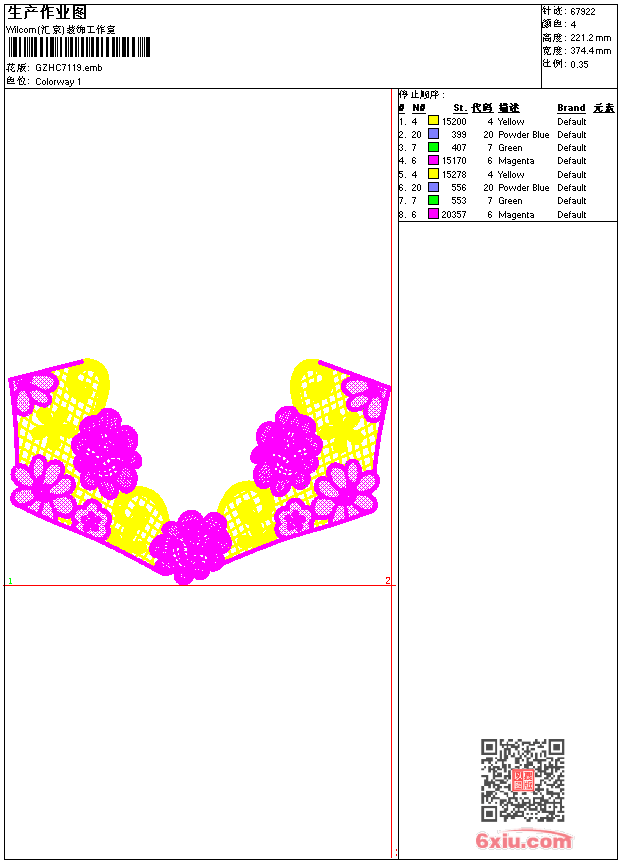 肩领烫花 emb花版参数: 大小:356.00 KB / 尺寸:374*221[毫米] / 针数:67922针 / 线色:4 / 格式:emb / 版本:9 版带文件需绣花软件方可打开,可配色打印导出各种格式或直接上机绣。如无绣花软件可下载1:1模拟效果图。 PNG图片信息:大小:1.2(MB) /图宽*高:1417x837(像素) emb下载 1:1图下载 关闭 相关花版: 鸭子卡通 曲线 人物脸像 衣领 条码简洁 花简洁 民族衣领曲线 裙树 字母章 皇冠 经裤简洁 曲线旋涡 章仔 女装背曲线镂空 经典玫瑰花 花简洁 童花 鸟心形 皮带条 裙角曲线 抽象花 童花 家纺曲线大 花曲线团 几何衣肩 玫瑰花肩 衣领 童曲线 童花 蝴蝶卡通