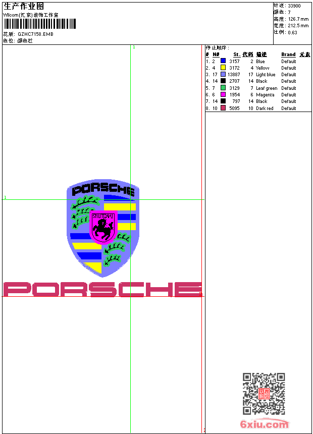 porsche章仔 emb花版参数: 大小:104.00 KB / 尺寸:212*127[毫米] / 针数:33900针 / 线色:7 / 格式:emb / 版本:7 版带文件需绣花软件方可打开,可配色打印导出各种格式或直接上机绣。如无绣花软件可下载1:1模拟效果图。 PNG图片信息:大小:0.3(MB) /图宽*高:804x480(像素) emb下载 1:1图下载 关闭 相关花版: 人物卡通 袖颈条码 裙摆 亮片 珠片条码 简单小花 牡丹花条 衣角 裙摆 衣领 裙摆条 鹤吉祥 蝴蝶花经典唐装 衣领胸 单针曲线花 衣领 熊贴布 骷髅 蜘蛛卡通 女装抽象花 童装房屋 雕刻花 花朵 衣领 单针曲线 花朵条码 弯条码 胸衣领 条码 熊卡通 苹果卡通小孩