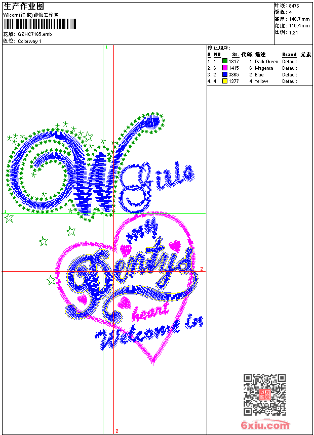 心形贴布 emb花版参数: 大小:80.50 KB / 尺寸:110*141[毫米] / 针数:8476针 / 线色:4 / 格式:emb / 版本:9 版带文件需绣花软件方可打开,可配色打印导出各种格式或直接上机绣。如无绣花软件可下载1:1模拟效果图。 PNG图片信息:大小:0.2(MB) /图宽*高:418x533(像素) emb下载 1:1图下载 关闭 相关花版: 曲线 人物卡通 女装花 童花 porsche章仔 人物卡通 袖颈条码 裙摆 亮片 珠片条码 简单小花 牡丹花条 衣角 裙摆 衣领 裙摆条 鹤吉祥 蝴蝶花经典唐装 衣领胸 单针曲线花 衣领 熊贴布 骷髅 蜘蛛卡通 女装抽象花 童装房屋 雕刻花 花朵 衣领 单针曲线 花朵条码