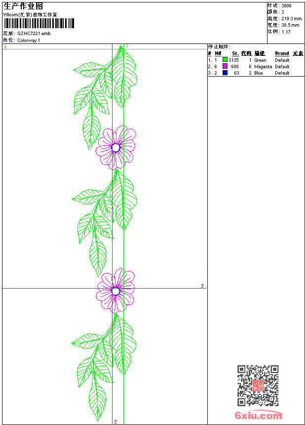 花条 emb花版参数: 大小:48.50 KB / 尺寸:38*219[毫米] / 针数:3808针 / 线色:3 / 格式:emb / 版本:9 版带文件需绣花软件方可打开,可配色打印导出各种格式或直接上机绣。如无绣花软件可下载1:1模拟效果图。 PNG图片信息:大小:0.1(MB) /图宽*高:146x830(像素) emb下载 1:1图下载 关闭 相关花版: 骷髅狗 鹰 对称抽象 肩领条 蝴蝶 人物头像 假领 简单曲线裤袋 简单花 衣领 米奇卡通 曲线对称 胸前花 装饰家纺条纹 海洋生物 装饰条纹 装饰条纹 海鱼 海鱼 贝壳花纹 装饰花纹 鸟上枝头 贝壳花纹 简单花 简单花 简单花 简单花 简单花 简单花 亮片 鞋样珠片