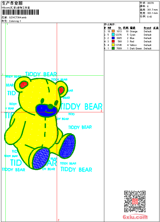 熊卡通 emb花版参数: 大小:165.50 KB / 尺寸:303*302[毫米] / 针数:38378针 / 线色:6 / 格式:emb / 版本:9 版带文件需绣花软件方可打开,可配色打印导出各种格式或直接上机绣。如无绣花软件可下载1:1模拟效果图。 PNG图片信息:大小:1.0(MB) /图宽*高:1147x1142(像素) emb下载 1:1图下载 关闭 相关花版: 雕孔条 衣领 曲线 曲线古典 裤花 简单花 烫花 胸曲线花 衣领胸 人物卡通 抽象几何裙衣摆 窗帘 人物头像 简单条 假领烫 条袖 窗帘 衣领 曲线抽象 裤脚 梅花 鹰标 裙裤边 乱针条码 古典衣领 蝎子卡通 简单花 衣领 女童花贴布 龙