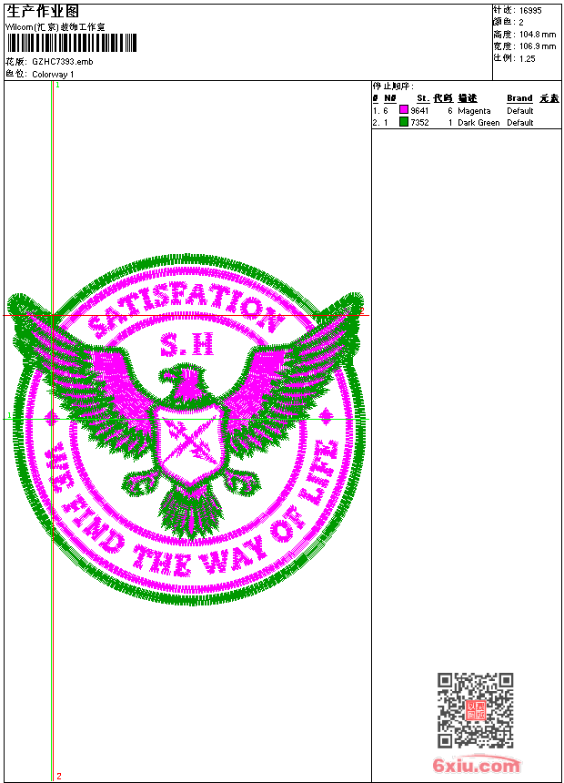 鹰标 emb花版参数: 大小:103.50 KB / 尺寸:107*105[毫米] / 针数:16995针 / 线色:2 / 格式:emb / 版本:9 版带文件需绣花软件方可打开,可配色打印导出各种格式或直接上机绣。如无绣花软件可下载1:1模拟效果图。 PNG图片信息:大小:0.2(MB) /图宽*高:405x397(像素) emb下载 1:1图下载 收藏本图 关闭 相关花版: 衣领 花边 裤袋 裙腰条码 人物美女 兔贴布 鹰章 衣领 经典裤花 迪斯尼 对称几何 衣领 裙衣曲线摆 曲线抽象 曲线抽象 玫瑰花衣领烫 人物 玫瑰花字母 简单花 裙摆 几何抽象方块 花简单 羽毛肩 几何胸前幅 曲线胸 熊卡通 雕孔条 衣领 曲线 曲线古典