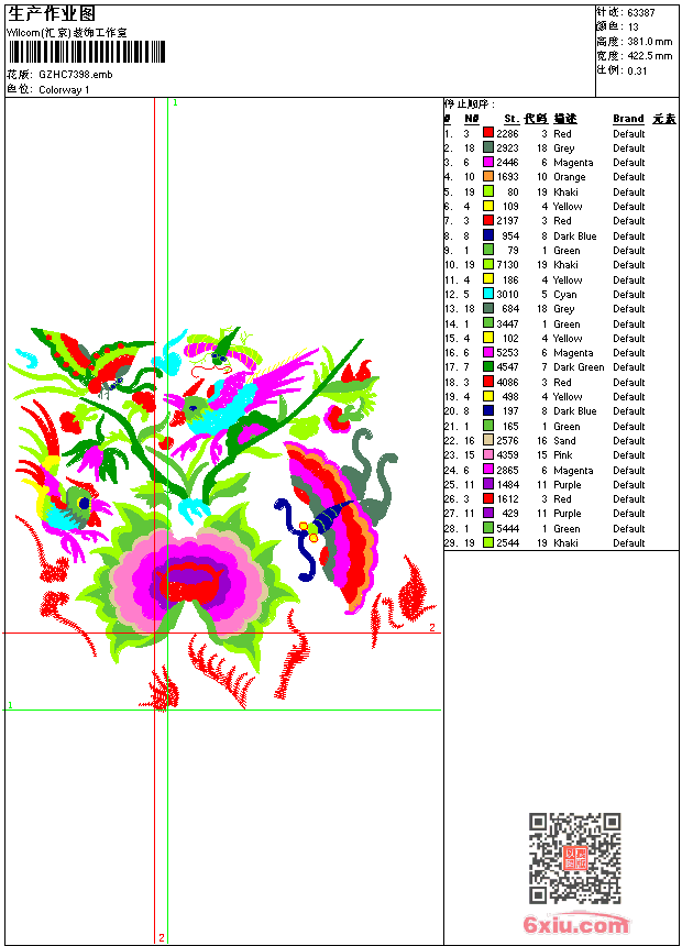 鸟蝴蝶吉祥牡丹花唐装 emb花版参数: 大小:349.50 KB / 尺寸:422*381[毫米] / 针数:63387针 / 线色:13 / 格式:emb / 版本:9 版带文件需绣花软件方可打开,可配色打印导出各种格式或直接上机绣。如无绣花软件可下载1:1模拟效果图。 PNG图片信息:大小:2.2(MB) /图宽*高:1598x1442(像素) emb下载 1:1图下载 关闭 相关花版: 腰皮带 胸前几何 鹰标 衣领 花边 裤袋 裙腰条码 人物美女 兔贴布 鹰章 衣领 经典裤花 迪斯尼 对称几何 衣领 裙衣曲线摆 曲线抽象 曲线抽象 玫瑰花衣领烫 人物 玫瑰花字母 简单花 裙摆 几何抽象方块 花简单 羽毛肩 几何胸前幅 曲线胸 熊卡通 雕孔条