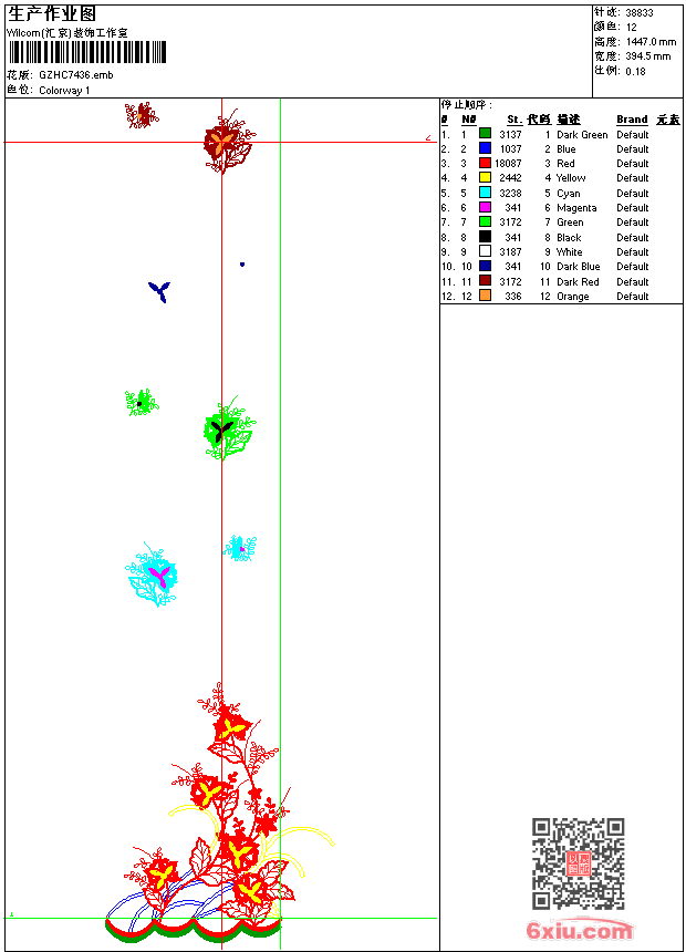 窗帘 emb花版参数: 大小:158.50 KB / 尺寸:395*1447[毫米] / 针数:38833针 / 线色:12 / 格式:emb / 版本:9 版带文件需绣花软件方可打开,可配色打印导出各种格式或直接上机绣。如无绣花软件可下载1:1模拟效果图。 PNG图片信息:大小:1.5(MB) /图宽*高:1493x5474(像素) emb下载 1:1图下载 关闭 相关花版: 卡通 卡通 衣角曲线 窗帘 条码 裤袋 蝴蝶抽象 翅膀心形 花衣 条码 马车 裙曲线 窗帘 窗帘 猫卡通 条码 绳绣 抽像曲线块 简单花 条码 字母简单花 简单花 领口 蝴蝶花 袖口边 条码烫 简单花 简单花 古典大花吉祥 鸟蝴蝶吉祥牡丹花唐装