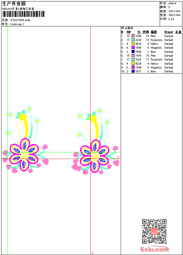 童花 emb花版参数: 大小:121.00 KB / 尺寸:390*230[毫米] / 针数:24414针 / 线色:5 / 格式:emb / 版本:9 版带文件需绣花软件方可打开,可配色打印导出各种格式或直接上机绣。如无绣花软件可下载1:1模拟效果图。 PNG图片信息:大小:0.7(MB) /图宽*高:1474x871(像素) emb下载 1:1图下载 关闭 相关花版: 衣大花 弯条码 窗帘 卡通 卡通 衣角曲线 窗帘 条码 裤袋 蝴蝶抽象 翅膀心形 花衣 条码 马车 裙曲线 窗帘 窗帘 猫卡通 条码 绳绣 抽像曲线块 简单花 条码 字母简单花 简单花 领口 蝴蝶花 袖口边 条码烫 简单花