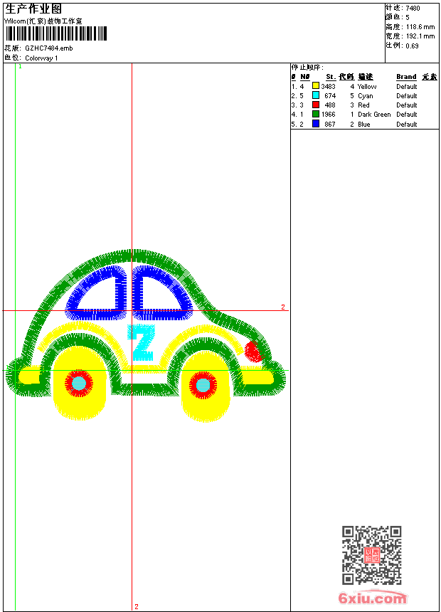 汽车 emb花版参数: 大小:41.00 KB / 尺寸:192*119[毫米] / 针数:7480针 / 线色:5 / 格式:emb / 版本:9 版带文件需绣花软件方可打开,可配色打印导出各种格式或直接上机绣。如无绣花软件可下载1:1模拟效果图。 PNG图片信息:大小:0.4(MB) /图宽*高:727x449(像素) emb下载 1:1图下载 关闭 相关花版: 抽象公仔画 裤袋 古典花 裙大花 花条码 章标 童花 裙圆抽象 装饰条码 装饰小条 古典装饰条花瓶 肩花水溶 窗帘 裙大幅摆 衣领 简笔花 人物卡通 抽象曲线 童花蝴蝶 裙摆花大幅 裙摆 简单花 抽象花 鹰章 抽象曲线女 蝴蝶贴布 衣领烫 裙衣摆 条码 简单花