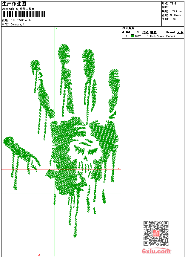 骷髅手掌 emb花版参数: 大小:49.00 KB / 尺寸:97*159[毫米] / 针数:7839针 / 线色:1 / 格式:emb / 版本:9 版带文件需绣花软件方可打开,可配色打印导出各种格式或直接上机绣。如无绣花软件可下载1:1模拟效果图。 PNG图片信息:大小:0.2(MB) /图宽*高:366x603(像素) emb下载 1:1图下载 关闭 相关花版: 花曲线 树叶 衣领胸 女上衣抽象曲线 传统花 烫花衣领 衣领 衣领 衣领 抽象曲线 汽车 抽象公仔画 裤袋 古典花 裙大花 花条码 章标 童花 裙圆抽象 装饰条码 装饰小条 古典装饰条花瓶 肩花水溶 窗帘 裙大幅摆 衣领 简笔花 人物卡通 抽象曲线 童花蝴蝶