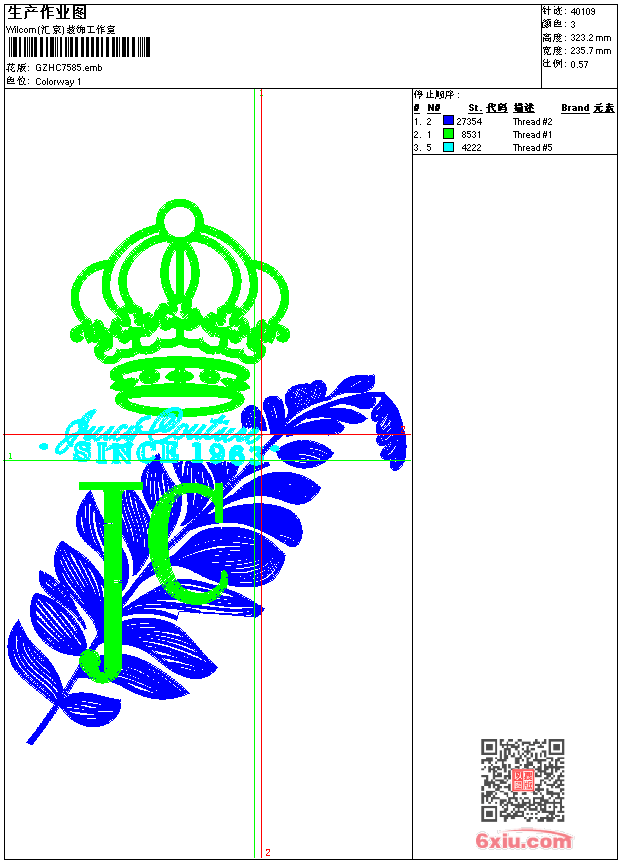 皇冠叶 emb花版参数: 大小:316.00 KB / 尺寸:236*323[毫米] / 针数:40109针 / 线色:3 / 格式:emb / 版本:9 版带文件需绣花软件方可打开,可配色打印导出各种格式或直接上机绣。如无绣花软件可下载1:1模拟效果图。 PNG图片信息:大小:0.9(MB) /图宽*高:892x1223(像素) emb下载 1:1图下载 关闭 相关花版: 花摆 衣领 衣领 烫花 裙摆 裙摆 手雷 皮带条 简洁花 衣领 简洁花 雕孔花摆 装饰花 装饰条 米奇 经典花型 肩花 装饰花条 条码 条码 条码 装饰曲线 裤曲线 装饰花 古典花圆装饰 链目绣叶 裤袋 衣领 曲线条 女上衣小花