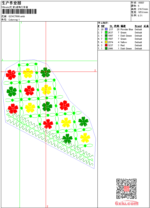 肩网格花 emb花版参数: 大小:93.50 KB / 尺寸:186*216[毫米] / 针数:15557针 / 线色:5 / 格式:emb / 版本:8 版带文件需绣花软件方可打开,可配色打印导出各种格式或直接上机绣。如无绣花软件可下载1:1模拟效果图。 PNG图片信息:大小:0.3(MB) /图宽*高:703x819(像素) emb下载 1:1图下载 关闭 相关花版: 米奇 鸟凤凰吉祥 窗帘 章标鹰 皮带条 亮片 珠片条 翅膀标 装饰花 花条 简洁花 蜡笔卡通 裤袋 抽象曲线 简洁花 裤袋 衣领 窗帘 古典装饰花抽象 皇冠叶 花摆 衣领 衣领 烫花 裙摆 裙摆 手雷 皮带条 简洁花 衣领 简洁花