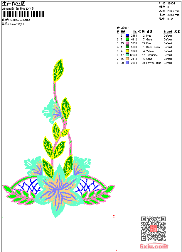 烫花 emb花版参数: 大小:228.50 KB / 尺寸:209*297[毫米] / 针数:39054针 / 线色:8 / 格式:emb / 版本:9 版带文件需绣花软件方可打开,可配色打印导出各种格式或直接上机绣。如无绣花软件可下载1:1模拟效果图。 PNG图片信息:大小:0.6(MB) /图宽*高:791x1123(像素) emb下载 1:1图下载 关闭 相关花版: 熊卡通 皇冠royal parade 玫瑰花 字母裤袋 衣领 衣领 亮片 裙衣摆条 衣领 花条 衣领胸 人物贴布童 衣领 花树 古典花 吉祥花 吉祥花 抽象花 衣领 裤腰 皮带条 羊条码 小花 衣领 肩网格花 米奇 鸟凤凰吉祥 窗帘 章标鹰 皮带条 亮片 珠片条