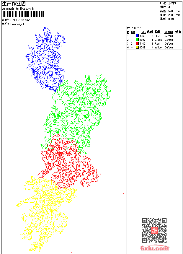 家纺大花 emb花版参数: 大小:227.00 KB / 尺寸:221*520[毫米] / 针数:24785针 / 线色:4 / 格式:emb / 版本:9 版带文件需绣花软件方可打开,可配色打印导出各种格式或直接上机绣。如无绣花软件可下载1:1模拟效果图。 PNG图片信息:大小:0.7(MB) /图宽*高:836x1967(像素) emb下载 1:1图下载 关闭 相关花版: 镂空花 玫瑰花十字绣 条码 简洁花 抽象曲线 肩花 衣角圈 鸟枝头唐装 衣领 皇冠标 烫花 熊卡通 皇冠royal parade 玫瑰花 字母裤袋 衣领 衣领 亮片 裙衣摆条 衣领 花条 衣领胸 人物贴布童 衣领 花树 古典花 吉祥花 吉祥花 抽象花 衣领 裤腰