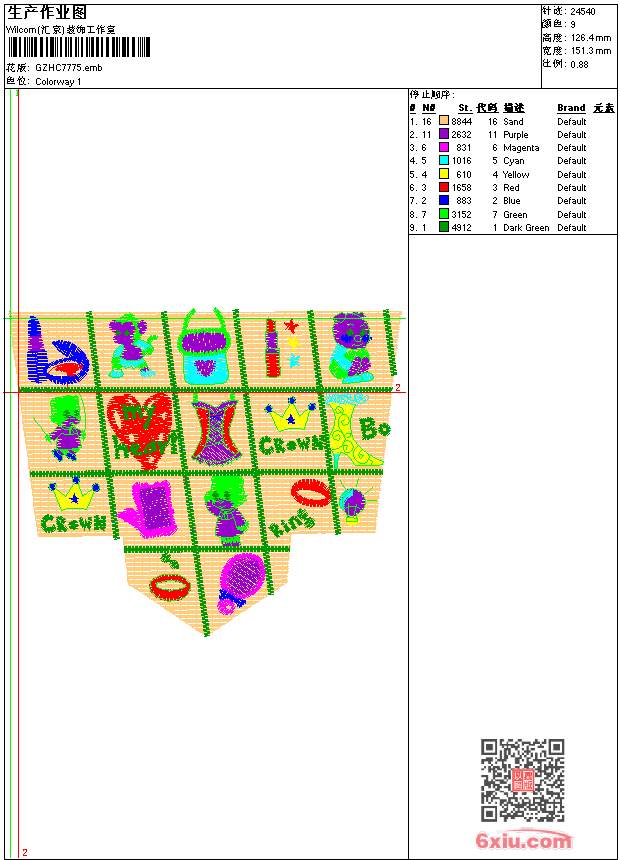 卡通裤袋 emb花版参数: 大小:109.00 KB / 尺寸:151*126[毫米] / 针数:24540针 / 线色:9 / 格式:emb / 版本:9 版带文件需绣花软件方可打开,可配色打印导出各种格式或直接上机绣。如无绣花软件可下载1:1模拟效果图。 PNG图片信息:大小:0.4(MB) /图宽*高:573x479(像素) emb下载 1:1图下载 关闭 相关花版: 窗帘 仿绳绣 汽车卡通 裤花 裤袋 亮片 裙摆 衣领 衣领 衣领 米奇 裙摆条 几何抽象 衣领 裙摆大花 翅膀 家纺大花单针 亮片 珠片花 条码 衣领烫花 胸条几何装饰 简单花 简单花 装饰袖条 装饰袖条 裙摆 马赛克 胸襟条 衣领童 割花 水溶衣领