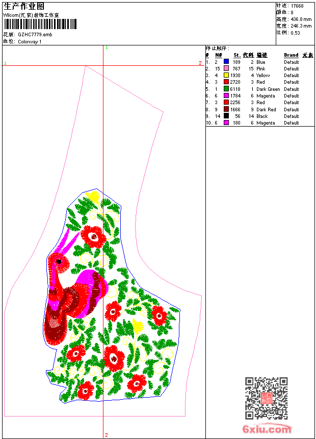 鸟吉祥花 emb花版参数: 大小:110.50 KB / 尺寸:246*437[毫米] / 针数:17668针 / 线色:8 / 格式:emb / 版本:9 版带文件需绣花软件方可打开,可配色打印导出各种格式或直接上机绣。如无绣花软件可下载1:1模拟效果图。 PNG图片信息:大小:0.7(MB) /图宽*高:932x1653(像素) emb下载 1:1图下载 关闭 相关花版: 肩花 窗帘 条码 卡通裤袋 窗帘 仿绳绣 汽车卡通 裤花 裤袋 亮片 裙摆 衣领 衣领 衣领 米奇 裙摆条 几何抽象 衣领 裙摆大花 翅膀 家纺大花单针 亮片 珠片花 条码 衣领烫花 胸条几何装饰 简单花 简单花 装饰袖条 装饰袖条 裙摆 马赛克
