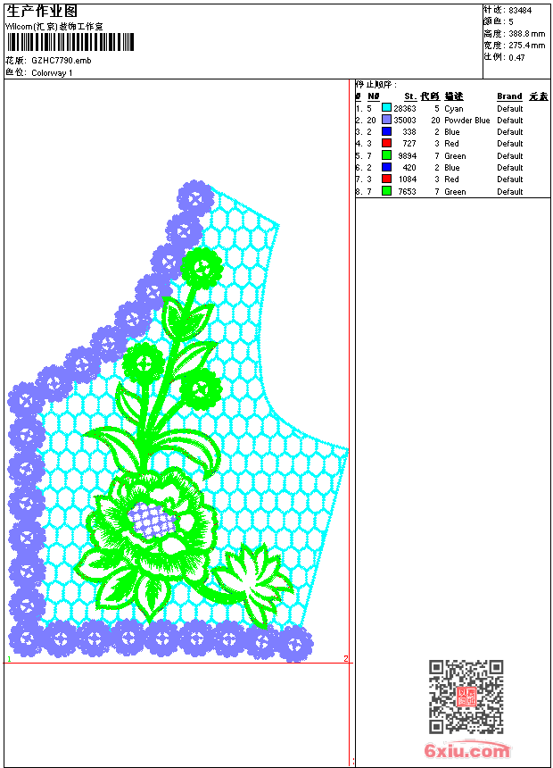 肩花 emb花版参数: 大小:638.00 KB / 尺寸:275*389[毫米] / 针数:83484针 / 线色:5 / 格式:emb / 版本:9 版带文件需绣花软件方可打开,可配色打印导出各种格式或直接上机绣。如无绣花软件可下载1:1模拟效果图。 PNG图片信息:大小:1.5(MB) /图宽*高:1042x1471(像素) emb下载 1:1图下载 关闭 相关花版: 窗帘 衣曲线叶 衣曲线叶 窗帘 衣领 烫花单 古典衣领 窗帘 鸟吉祥花 肩花 窗帘 条码 卡通裤袋 窗帘 仿绳绣 汽车卡通 裤花 裤袋 亮片 裙摆 衣领 衣领 衣领 米奇 裙摆条 几何抽象 衣领 裙摆大花 翅膀 家纺大花单针 亮片 珠片花