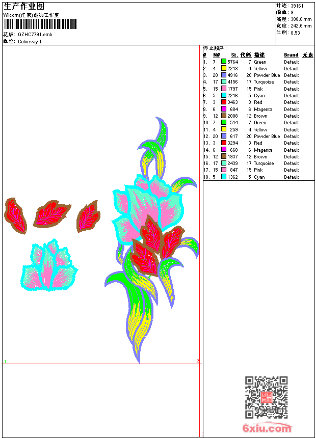 烫花单 emb花版参数: 大小:202.00 KB / 尺寸:243*308[毫米] / 针数:39161针 / 线色:9 / 格式:emb / 版本:9 版带文件需绣花软件方可打开,可配色打印导出各种格式或直接上机绣。如无绣花软件可下载1:1模拟效果图。 PNG图片信息:大小:0.7(MB) /图宽*高:918x1166(像素) emb下载 1:1图下载 关闭 相关花版: 肩花 窗帘 衣曲线叶 衣曲线叶 窗帘 衣领 烫花单 古典衣领 窗帘 鸟吉祥花 肩花 窗帘 条码 卡通裤袋 窗帘 仿绳绣 汽车卡通 裤花 裤袋 亮片 裙摆 衣领 衣领 衣领 米奇 裙摆条 几何抽象 衣领 裙摆大花 翅膀 家纺大花单针