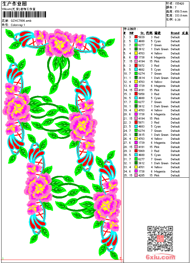 烫花 emb花版参数: 大小:1.02 MB / 尺寸:334*650[毫米] / 针数:155420针 / 线色:7 / 格式:emb / 版本:9 版带文件需绣花软件方可打开,可配色打印导出各种格式或直接上机绣。如无绣花软件可下载1:1模拟效果图。 PNG图片信息:大小:3.2(MB) /图宽*高:1263x2461(像素) emb下载 1:1图下载 关闭 相关花版: 亮片 珠片大花 窗帘 三角针花 衣领 窗帘 窗帘 衣摆条 衣领 烫花单 肩花 窗帘 衣曲线叶 衣曲线叶 窗帘 衣领 烫花单 古典衣领 窗帘 鸟吉祥花 肩花 窗帘 条码 卡通裤袋 窗帘 仿绳绣 汽车卡通 裤花 裤袋 亮片 裙摆 衣领
