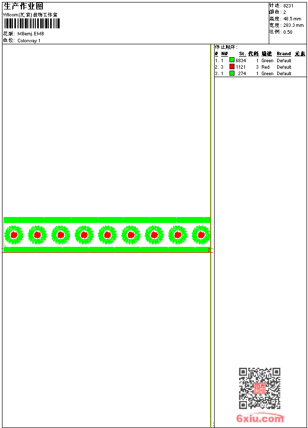 条码 emb花版参数: 大小:30.50 KB / 尺寸:283*49[毫米] / 针数:8231针 / 线色:2 / 格式:emb / 版本:7 版带文件需绣花软件方可打开,可配色打印导出各种格式或直接上机绣。如无绣花软件可下载1:1模拟效果图。 PNG图片信息:大小:0.2(MB) /图宽*高:1072x184(像素) emb下载 1:1图下载 关闭 相关花版: 十字绣装饰台布 抽象直线 衣领 儿童贴布 简单花 衣领胸 头盔 头盔 亮片 裤曲线 亮片 裤曲线 衣花 鹤鸟 简单曲线 裙摆 毛巾绣荷花 家纺花 古典大花 衣领 衣领 衣领 曲线 抽象曲线衣 裙摆曲线 衣花 肩花 单花条烫 衣领烫 狮标 衣领 王冠