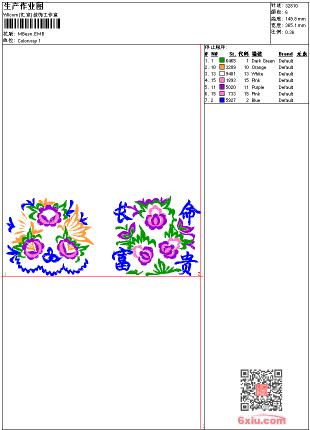 传统吉祥图案 长命富贵 emb花版参数: 大小:155.00 KB / 尺寸:365*150[毫米] / 针数:32810针 / 线色:6 / 格式:emb / 版本:7 版带文件需绣花软件方可打开,可配色打印导出各种格式或直接上机绣。如无绣花软件可下载1:1模拟效果图。 PNG图片信息:大小:0.9(MB) /图宽*高:1381x567(像素) emb下载 1:1图下载 关闭 相关花版: 猫hello kitty 玫瑰条码 蝴蝶 装饰曲线 装饰曲线 装饰花 装饰曲线 装饰曲线 装饰曲线 帆船 鱼卡通 曲线装饰 古典树枝蝴蝶 狗卡通 衣领 衣领 76章仔 衣领胸曲线 女花衣 水溶衣领 水溶领条 人物美女 肩花 十字绣衣领胸 裙摆 蝴蝶 条码 家纺大花 衣领 衣角