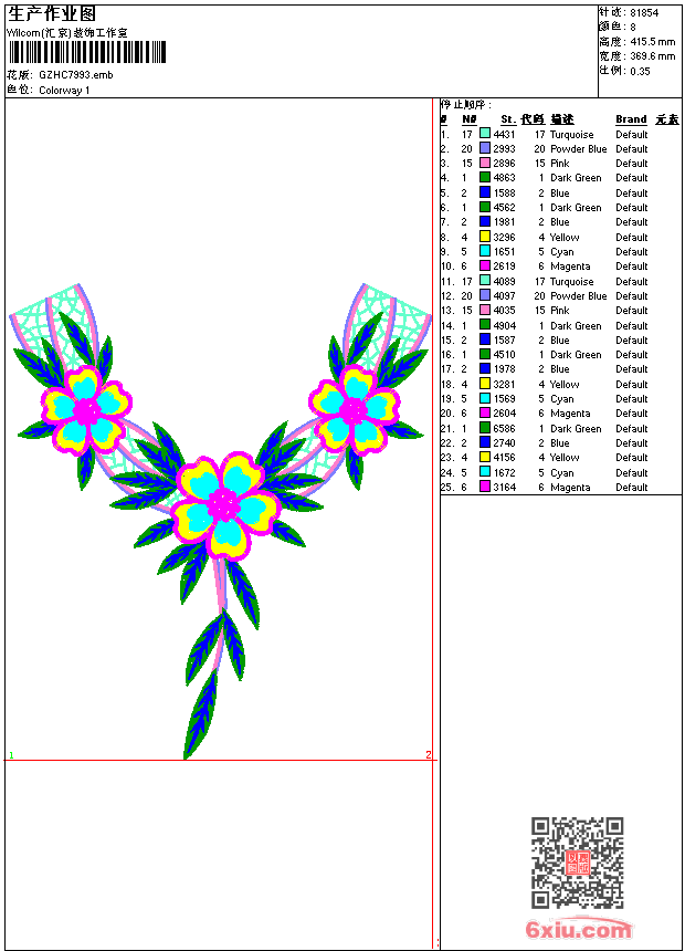 衣领 emb花版参数: 大小:470.50 KB / 尺寸:370*415[毫米] / 针数:81854针 / 线色:8 / 格式:emb / 版本:9 版带文件需绣花软件方可打开,可配色打印导出各种格式或直接上机绣。如无绣花软件可下载1:1模拟效果图。 PNG图片信息:大小:1.3(MB) /图宽*高:1398x1572(像素) emb下载 1:1图下载 关闭 相关花版: 裙腰曲线 翅膀风衣 袖花 袖花 裙花条 网布条码 衣领 后背花 衣领 衣领 衣领 条码 牡丹花蝴蝶 腰裙摆条 衣领 简单花条 虎头 衣领 裙摆曲线条 裤脚曲线 袖曲线 传统吉祥图案 长命富贵 猫hello kitty 玫瑰条码 蝴蝶 装饰曲线 装饰曲线 装饰花 装饰曲线 装饰曲线