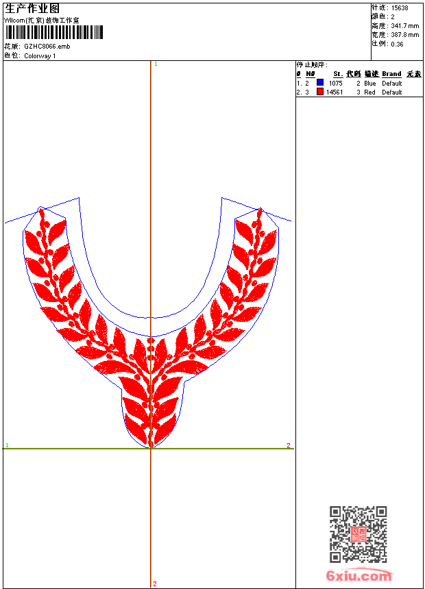 衣领 emb花版参数: 大小:82.50 KB / 尺寸:388*342[毫米] / 针数:15638针 / 线色:2 / 格式:emb / 版本:9 版带文件需绣花软件方可打开,可配色打印导出各种格式或直接上机绣。如无绣花软件可下载1:1模拟效果图。 PNG图片信息:大小:0.9(MB) /图宽*高:1467x1293(像素) emb下载 1:1图下载 收藏本图 关闭 相关花版: 衣领 章仔 绳绣 鹰曲线 简洁曲线 古典条纹 牡丹花 玫瑰花衣领 衣领 小花 唐装牡丹花 十字绣条码 裤袋 龙 衣领 衣襟条码 抽象花 衣领 衣领 万圣节字母 传统古典图案 衣领 复杂女衣花 衣领 骷髅 汽车卡通 裙摆中东 衣领 抽象花 企鹅贴布