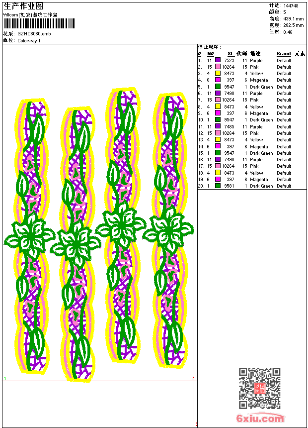 条码 emb花版参数: 大小:816.00 KB / 尺寸:282*439[毫米] / 针数:144748针 / 线色:5 / 格式:emb / 版本:9 版带文件需绣花软件方可打开,可配色打印导出各种格式或直接上机绣。如无绣花软件可下载1:1模拟效果图。 PNG图片信息:大小:2.3(MB) /图宽*高:1069x1661(像素) emb下载 1:1图下载 收藏本图 关闭 相关花版: 童花蝴蝶 十字绣条码 衣领 胸几何 胸曲线花 衣领 凤凰 凤凰 网布条码 衣领 简单花 米奇 狗狗 童五星 衣领 蘑菇卡通 衣领 衣领 章仔 绳绣 鹰曲线 简洁曲线 古典条纹 牡丹花 玫瑰花衣领 衣领 小花 唐装牡丹花 十字绣条码 裤袋