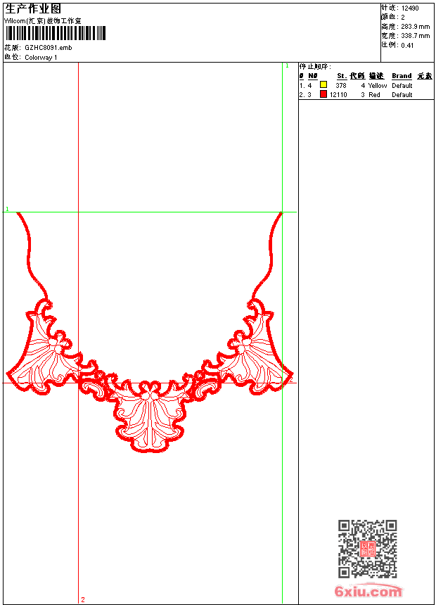 衣领 emb花版参数: 大小:122.50 KB / 尺寸:339*284[毫米] / 针数:12490针 / 线色:2 / 格式:emb / 版本:9 版带文件需绣花软件方可打开,可配色打印导出各种格式或直接上机绣。如无绣花软件可下载1:1模拟效果图。 PNG图片信息:大小:0.4(MB) /图宽*高:1282x1074(像素) emb下载 1:1图下载 关闭 相关花版: 马法拉利ferrari 条码皮带 抽象花 曲线衣 镂空曲线后背 裙条码 简洁小花 裙衣曲线 条码 童花蝴蝶 十字绣条码 衣领 胸几何 胸曲线花 衣领 凤凰 凤凰 网布条码 衣领 简单花 米奇 狗狗 童五星 衣领 蘑菇卡通 衣领 衣领 章仔 绳绣 鹰曲线